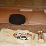 この高級テントは1室の客室,コ-ヒ-/紅茶メ-カ- と座席があります. 6の客室と1のバスル-ムがあります. 浴室に独立したトイレ とシャワ-はあります.